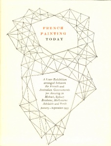 FRENCH PAINTING TODAY A L o a n Exhibition arranged between t he French and Aus t ral ian Governments f o r showi ng in Hoba r t , Sydney Brisbane, Melbourne Ade l a i de and Perth January - September 1953